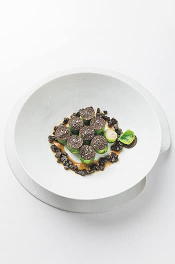 Jannis is admirably averse to trends. However, you cannot just call him traditional because he remains true to his own light-hearted, refined, yet original way of cooking. He cooks directly, purely and transparently. A balanced composition is the result of technique, creativity and product knowledge’. This principle is also reflected in his works of art.